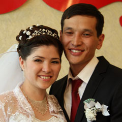 У них были общие друзья, на свадьбе которых и познакомились. Но тогда они не заметили друг друга. Через год молодые люди встретились на годовщине свадьбы. Тогда Еркебулан все-таки приметил девушку. Айжан работала в Карасу, каждые выходные он приезжал к ней. Но иногда не мог дождаться субботы и появлялся вечером, после работы. Через несколько месяцев общие друзья уже гуляли на свадьбе Айжан и Еркебулана.