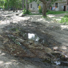 На месте корреспонденты «НГ» увидели на заезде в этот двор сплошные кучи грязи, раскопанной земли, провалившийся асфальт.