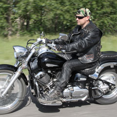 Внешний вид Сергея соответствует представлению о «настоящем» байкере.