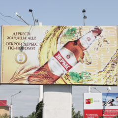 За пару дней в областном центре мы, особо не напрягаясь, насчитали не менее десятка билбордов с рекламой четырех марок пива. «Белый медведь» (Efes Казахстан) со слоганом «Бываю мягким», используемым, кстати, в телевизионной рекламе вполне алкогольного пива этого производителя. «Тянь-Шань» того же производителя со слоганом, также известным для рекламы алкогольной продукции, - «Глоток природы в жарком городе». А также эфесовское же«Карагандинское» и пиво «Дербес» (Derbes, Алматы) на плакатах, с изображением которых также имелась надпись «Безалкогольное».