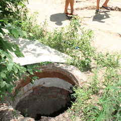 Корреспонденты «НГ» побывали по указанному адресу. Между СШ № 3 и домом № 375 по ул. Каирбекова находится электроподстанция, за ней, прямо на пешеходной дорожке, колодец, прикрытый куском гипсокартона. Рядом растет кленовый куст и его ветки прикрывают дыру, колодец трудно заметить с первого взгляда. Глубина - около 3-4 м, на дне мусор и ветки деревьев. Как раз в это время рядом прошли дети, обходя колодец стороной. На наш вопрос: «Не боитесь ли провалиться?» - ответили: «Нет, мы к нему уже привыкли давно».