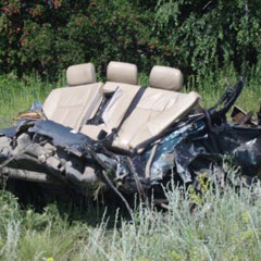 После столкновения с «Волгой» «Мерседес» развалился на две части