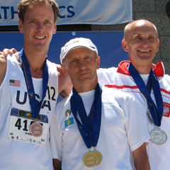 В родной Костанай он вернулся 17 июля с двумя золотыми медалями на груди: за забеги на 5000 м и 10000 м. Несмотря на то, что о 19-м чемпионате мира по легкой атлетике среди ветеранов, который проходил с 6 по 17 июля в Калифорнии, в нашей стране говорилось мало, 52-летнего легкоатлета Сергея ПОЛИКАРПОВА по праву можно назвать гордостью страны: из 7 человек, приехавших из Казахстана, лишь он один смог не только показать отличный результат, но и завоевать две золотые медали.