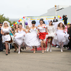 Парад прошел от здания художественной школы до сцены в Сити-центре, там невесты соревновались в конкурсе на самое оригинальное платье, «зажигали» под музыку, а позже устроили «забег на каблуках».