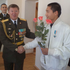 В понедельник, 29 августа, начальник областного департамента по ЧС Евгений БАТОВ торжественно вручил 20-летним костанайцам Даурену Кадымову и Ардаку Баймухамбетову медали «За героизм».