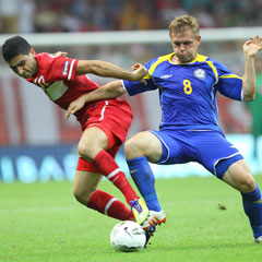 На 92-й минуте Александр Мокин допустил ошибку в собственной штрафной, взяв мяч в руки после ввода в игру, и арбитр наказал казахстанцев свободным ударом. Пушечный удар хозяев принял на себя Шмидтгаль. И тут казахстанцы устремились в быструю контратаку, в результате которой на рандеву с Волканом отправился Гридин, правда, с Хаканом Балтой на плечах. Казалось, что Сергей повторит свой фирменный удар, который принес победу над сборной Азербайджана, но мяч прошел мимо ворот. И тут же ответная контратака хозяев привела к весьма спорному «стандарту» в метре от нашей штрафной. Вызвался бить Арда Туран, его удар после рикошета от стенки влетел в левый от Мокина угол - 2:1. До героической ничьей не хватило каких-то секунд.
