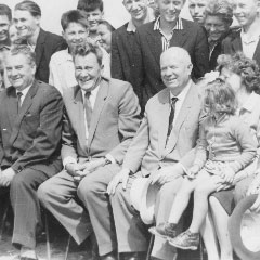 Целинный край. 13 августа 1964 года. Целиноград. В первом ряду - Кунаев, Хрущев, Демиденко