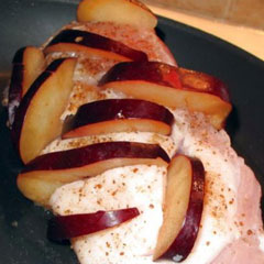 Добавление фруктов к мясу, причем почти любых, - это гарантия нового вкуса. Свинина с луком и чесноком, конечно, вещь! Но с айвой, грушами, абрикосами тоже стоит попробовать. А сейчас, например, яблоки, сливы на каждом лотке - просто прелесть.