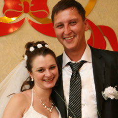 Родители молодых людей - кумовья, поэтому они знали друг друга давно, но заочно. Виталий решил познакомиться с Еленой лично и пришел к ней на работу с тортом. Девушка работала в кондитерской, но согласилась выпить по чашке чая со старым-новым знакомым. Это было 8 лет назад. Этой весной Елена, придя домой, увидела на столе коробку ее любимых конфет «Рафаэлло». На дне коробки девушка обнаружила два золотых колечка. Вскоре Елена и Виталий сыграли свадьбу.