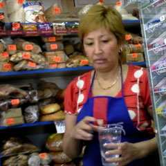 Адрес следующего магазина сообщили пользователи сайта ng.kz - «Азык-тулик» на углу улиц Л. Беды и Маяковского. На вопрос, есть ли пиво и вино на разлив, продавец отрицательно качает головой. Но услышав о водке, пристально смотрит на покупателя и многозначительно опускает веки. Водка налита в большой стакан (маленьких нет) и обошлась в 75 тенге.