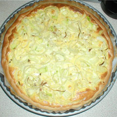 У нас дома очень любят кабачок в сметане: обжариваю запанированные в муке ломтики кабачка, потом солю, перчу, посыпаю луком и зеленью, заливаю сметаной и даю прокипеть минут 5-7. Вкусно с рисом, с картофельным пюре. Но, оказывается, это может быть прекрасной начинкой открытого пирога - французского киша. Из песочного теста выпекаете до бледно-золотистого цвета основу пирога - «тарелку с бортиками», выкладываете туда готовый кабачок в соусе, засыпаете сыром и печете до румяной корочки. Тесто рассыпчатое, начинка нежная, вкуснятина получается.