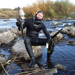 Почему для этого нужно затаить дыхание? Это просто! Погружение с ружьем и дыхательным аппаратом - уже не охота. Скорее браконьерство. Примерно как сайгаков вертолетами загонять. Правильный охотник под водой живет на том запасе кислорода, который есть в его личных легких. И, соответственно, превосходства над своей потенциальной жертвой не имеет. Но вспомнить об этом мне удалось совсем недавно, поскольку, если «промочить жабры» на Тоболе летом удавалось довольно часто, то рыбу подстрелить мешали постоянные дожди. После каждого ливня вода в реке почти неделю оставалась мутной, да и сине-зеленые водоросли летом не прибавляют видимости. Поэтому и выбирался я только за раками к субботнему пиву. Сезон подводной охоты начался сейчас, когда температура воды стала около 10 градусов, и сильных дождей давно не было.