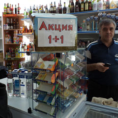 Периодически на прилавках костанайских магазинов появляются объявления акции «1+1». Популярная в народе замануха позволяет за цену одной бутылки водки получить сразу две. Несмотря на популярность, акции проходят подальше от центровых магазинов и широко не рекламируются. Если вас посетила мысль, что их проведение не совсем законно - не гоните ее, это правда.
