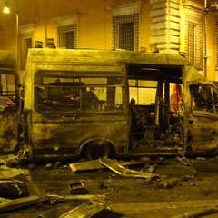Наиболее беспокойными оказались манифестанты в Риме. По некоторым данным, в демонстрациях приняли участие около 200 тыс. человек, а ущерб, нанесенный ими городу, оценивается в интервале от одного до двух миллионов евро. При этом предполагается, что за беспорядками стоят всего несколько сотен человек. Не исключено, что массовыми уличными выступлениями воспользовались радикальные группировки. Полицейские подозревают анархистов из организации «Черный блок». Отмечается, что наиболее активные участники погромов предусмотрительно вышли на улицы в защитных шлемах. Более того, La Repubblica в понедельник со ссылкой на одного из участников событий сообщила, что римские погромщики регулярно ездили в Афины, где учились «искусству уличных беспорядков» у греческих единомышленников. Из рассказа также следует, что к выступлениям погромщики готовились в течение года - то есть антикапиталистические демонстрации по образу американских просто удачно подвернулись под руку.