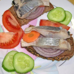 Сельдь с молочными продуктами - типично прибалтийское сочетание. И очень интересное. Попробуйте хоть раз - не пожалеете. Единственное условие - сельдь не должна быть очень соленой. Если такая, то вымочите ее часа три в молоке или крепком чае. А в остальном все очень просто. Нужны свежие огурцы, помидоры, белый лук, зелень укропа или петрушки. Все режете, как на обычный овощной салат, и добавляете филе сельди, порезанное довольно крупными кусочками. Заправляете сметаной и наслаждаетесь.