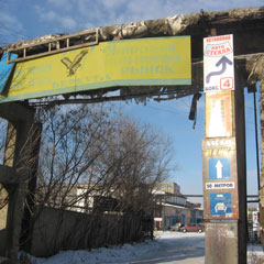 Указанную теплотрассу корреспонденты «НГ» нашли на въезде в рынок «Беркут». Над въездом, на высоте примерно в 5 м, расположена теплотрасса в виде буквы «П». Сверху с труб кусками свисает утеплитель. На одних местах материал просто стерся, на других изоляции полностью нет.