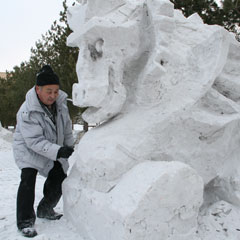 - Я каждый год вырезаю фигуры из снега, - говорит во время работы учитель физики СШ № 20 Джултай САДВАКАСОВ. - Сам нарисовал эскиз фигуры Дракона, которую сейчас делаю. Правда, снежный короб оказался чуть меньше, чем я задумывал, но буду делать из того, что есть. Затем фигуру сбрызну водой. Когда на ней появится ледяная корка, начну раскрашивать.
