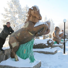В Бестобе все скульптуры ставятся со смыслом или в воспитательных целях. Если соседствуют герои казахского эпоса и русских сказок, значит, по разумению Бека Зейнеловича, символизируют дружбу народов. Или вот стоят рядом Казашка и тот самый Алеша, «в Болгарии русский солдат», на которого в припадке ревизионизма посягали национал-патриоты вроде бы и братской страны. Ну где ты еще увидишь, чтобы молодая степнячка доверчиво льнула к легендарному воину. А в Бестобе их соединили, тоже с мыслями о дружбе разных наций.