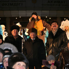 В понедельник, 12 декабря, Сергей КУЛАГИН включил иллюминацию на большой елке, установленной на площади перед областным акиматом. Аким области вышел к народу в 18.00. Народ - студенты и учащиеся - пришел за час до этого и в ожидании готов был пуститься в пляс, чтобы согреться.