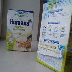 В «НГ» принесли коробку немецкой гречневой кашки Humana для детей первого года жизни - не угощать, разобраться. Когда родители готовили, заглядывая в инструкцию, еду для маленькой дочки, в тарелке получалось что-то вроде замазки. Вязкое и клейкое. Это что-то вряд ли годилось для малышки.