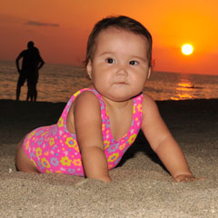 Аяулым растет здоровым ребенком. Она уже не боится воды и любит плавать. А папа с мамой с удовольствием ходят с ней в бассейн.