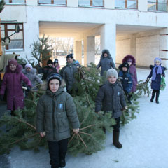 Утром 23 января мы поехали «за урожаем». Первой в нашем маршруте была школа № 22. Нам навстречу выбежали пятиклашки: «Ура, за нашими елками приехали!» - радовались ребята.