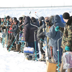Участниками традиционного чемпионата Костаная по спортивной ловле рыбы на мормышку стали 60 мужчин и одна женщина - Наталья Галицкая. С утра на «земснаряде» в районе КЖБИ собралось около сотни человек. Пришли спортсмены, болельщики, просто зеваки.