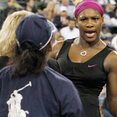 Ким Клийстерс - Серена Уильямс, US Open-2009, полуфинал. Шесть долгих лет минуло с последней встречи двух лучших хардовых теннисисток современности. Ким за это время успела выиграть никак не покорявшийся ей ТБШ, завершить карьеру, родить ребенка и вернуться в спорт (US Open стал для нее третьим камбэчным турниром). Серена - набрать вес, избавиться от него, получить новые травмы, вылететь из сотни и вновь стать первой ракеткой мира. В четвертом круге Клийстерс с парадоксальным счетом обыграла старшую сестру, но лучший свой теннис приберегла для младшенькой. Серена оказалась явно не готова к столь жесткому обмену ударами с задней линии, не раз оказывалась выбиваемой за коридор и постепенно накапливала раздражение. За проигрыш первого сета по голове получила только ракетка Серены, а что было в концовке партии второй, всем известно. Уступая 5:6 и 15:30, Серена сделала зашаг на второй подаче и пообещала засунуть известный предмет в известное место зафиксировавшей его Шино Цурубучи. В дело пришлось вмешаться не только судье на вышке, но и силам специального назначения в лице рефери и супервайзера турнира. Penalty point на матчболе - и Клийстерс выходит в финал.
