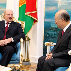 Амано в ответ заверил белорусского президента, что «Белоруссия является очень важным партнером МАГАТЭ», поскольку имеет печальный опыт в связи с чернобыльской катастрофой. Он также отметил, что авария на АЭС «Фукусима» «серьезно подорвала доверие людей к атомной энергетике».