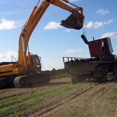 Двигаемся к поселку Уркаш. Возле него и располагаются скважины, откуда раньше подавалась вода. Именно в окрестностях Уркаша, по словам соседей, выкапывают трубы. Петляя между полей, тут и там натыкаемся на следы работ по демонтажу водовода. Ехать вдоль траншеи нельзя, мы-то даже не на «Ниве». Продвигаемся практически наугад, спрашивая по пути рабочих, занятых на посевной, как проехать на Уркаш. Наконец, преодолев километров 10, замечаем экскаватор. Тот действительно активно двигает ковшом. Метров за 150 до места его работы возле траншеи лежат выкопанные трубы. Сама траншея глубиной около 3-х метров и шириной около 2-х. Толщина стенок труб сантиметра 3, в диаметре она примерно 30 см. Подъезжаем ближе. Хмурые рабочие, явно не ждавшие гостей, неразговорчивы. На все вопросы отвечают одно: мол, мы только копаем, а для кого и для чего, не знаем. Якобы у труб хозяин есть, некий Юра, только они с ним лично не знакомы.