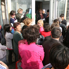 Особый ажиотаж возник в последний день подачи документов, 27 апреля. Перед обедом только в списке бюджетников значилось 90 человек. Очередь двигалась быстро - за полчаса проходили в среднем по 15 человек. Однако у людей возникали трудности с документами: одним не хватало размера семейного дохода, им пришлось искать созаемщиков, другим - каких-либо справок. Их отправляли переделывать бумаги. Вернувшись назад, люди вставали в очередь для подачи документов заново.
