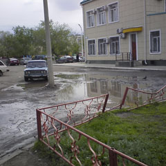 О нескольких ямах, расположенных при заезде к центральному зданию ЦОНа по улице Тарана, 114, неоднократно сообщали пользователи сайта www.ng.kz. После недавних дождей заезд практически затопило. Автомобили, обрызгивая друг друга, с трудом преодолевают участок. Парковаться возле центрального ЦОНа также приходится в грязной воде.