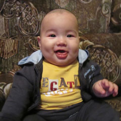 Алихан - энергичный, улыбчивый и шустрый мальчик. Он очень рано начал ходить, сейчас за ним уже просто не угнаться. Пока толком не разговаривает, но первое слово, которое он научился говорить, - это слово «папа». Как мама ни пытается заставить говорить его «мама», он все равно отвечает «папа».