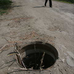 - Крышка с колодца пропала еще в начале марта, тогда снег лежал, - говорит он. - Кто-то рассказывал, что видел двух бичей с тележкой - рано-рано утром шли, внаглую открыли люк, кинули крышку в тележку и увезли. На нашей улице еще несколько крышек пропало. Когда этих воров уже наказывать начнут? Кто-то ветку воткнул в колодец, чтобы из далека видно было. Так он и до сих пор и открыт.