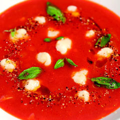 И ведь просто все. В Украине, например, в большой чести супы с творожными галушками. Их можно положить в любой овощной суп. Особенно хорошо они сочетаются с супами, в которых присутствует томатная заправка. Только не из пасты, а из живых помидоров. Их обдают кипятком, снимают шкурку, мелко режут. На хорошем растительном масле поджаривают лук, немного чеснока, потом туда же кладут помидоры и тушат, пока они не превратятся в однородную массу. Ее должно быть много: на 3 стакана бульона - стакан томатной массы. Это, собственно, уже и есть томатный суп, в бульоне (до смешивания с помидорами) можно отварить немного картошки. А в готовый суп положить отдельно отваренных творожных галушек. Делаются, как ленивые вареники, только тесто поплотнее и не забудьте в него добавить немного тертого мускатного ореха, можно - мелко-мелко нарубленной петрушки.
