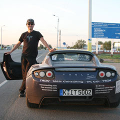 - Я всегда отвечаю честно: моя машина осталась в том же виде, какой была куплена в магазине. Я ничего не менял и не переделывал - только купил и поставил новые шины. Это американский электрокар серийного производства, марка Tesla Roadster 507, такой можно найти в любом автосалоне, продающем электромобили. Стоит эта модель около 25 000 евро.