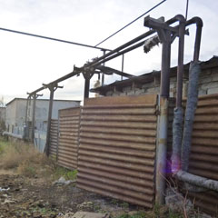 На месте оказалось, что указанная пенсионером теплотрасса находится в очень экзотическом месте. За Дворцом культуры находится поросший бурьяном пустырь, а дальше - участок, забросанный мусором, и начинаются коттеджи. Вдоль них и проходит несколько участков воздушной теплотрассы. На самом крайнем к Тоболу изоляция отсутствует по всей верхней части П-образной теплотрассы.