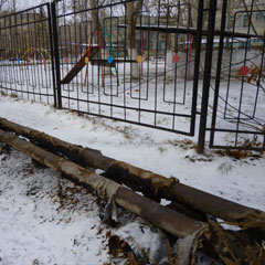 На месте корреспонденты «НГ» увидели, что недалеко от входа в садик проходит две трубы, на обеих рваные черные куски ветхого материала. Большая часть труб - вообще без признаков «одежды».