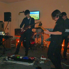 «Люди» стайками растекаются по этажам, а потом устаканиваются в зале, где уже все готово: посередине стоят инструменты, а ребята взялись за гитары. В комнате гаснет свет, в углах загораются свечи. Есть что-то в этом первобытное, если не сказать сатанинское. Одним словом, андеграунд.