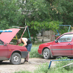 Кстати, в этом дворе вполне достаточно места и на асфальтированных, оборудованных для стоянки частях дороги. Да и вокруг дома есть две платные стоянки. Но владельцы машин предпочитают мыть и ремонтировать свои автомобили посреди детской площадки.