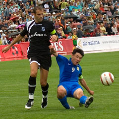 Гости после пропущенного гола заметно активизировались и вплоть до 40-й минуты настойчиво атаковали ворота «Тобыла». Но защитники костанайского клуба действовали четко. Особенно хорош был Димитров, успешно прерывавший пасы верхом и четко отбиравший мячи в подкатах. Он же сумел организовать опасную контратаку - получив ответный пас от Жумаскалиева, сильно пробил слева в ближний верхний угол ворот гостей. Но мяч пролетел рядом с крестовиной.