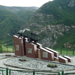 - От Костаная до Бийска - 1700 км. Утром мы выехали, к вечеру добрались до Павлодара. Переночевали там. Утром отправились дальше, и после обеда были уже у родственников, - рассказывает Рудев. - Поселок Благовещенка - всего 200 км от Павлодара. Это уже Алтайский край. Там два дня погостили и проехали очередные 512 км до Бийска. Перед марафоном я успел по городу погулять. Там довольно интересно. Шукшинские же места. А Василий Макарович - один из моих любимых авторов и актеров. Трасса веломарафона проходила мимо его родины - села Сростки. Но так вышло, что я туда не заехал. А мама там побывала, фотографировала. Там музей есть. На горе Пикет - памятник Шукшину, сидит он босой, домашний... Я на маршруте музеев не посещал, но видел другие вещи. Даже на сам Чуйский тракт интересно было посмотреть, про который песня есть известная. По ее мотивам памятник поставили - знаменитый грузовик АМО Кольки Снегирева, который догонял по тракту «зеленого форда». На табличках, которые укреплены на постаменте, выбиты слова песни. Я сделал фото этого места с разных ракурсов. Ну а самые богатые впечатления у меня остались, конечно, от алтайских пейзажей. У нас в области тоже не пустыня, но виды довольно однообразные. А там - зелень буйная, местами просто могучая, горы. А река Катунь какая! Хоть и горная, но широкая. И очень бурная.