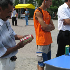 На фестивале «Напитков и воды», который организовало ТОО «АлтынЭкспоСервис» при поддержке областного акимата, свою продукцию представили ТОО «Дербес», «Арасан», «Арай 91», «Сибирский берег», «Лидер 2» и «Снэк Азия». На народной дегустации напитков, которая состоялась в первый день фестиваля, производители предлагали всем желающим попробовать свою продукцию совершенно бесплатно. Помимо кваса и минералки, граждане могли отведать также и пиво. Не станем утверждать, что все до единого стремились угоститься исключительно янтарным напитком, но... очередь из жаждущих и страждущих именно за пивом порой напоминала очередь за импортом в эпоху советского дефицита.