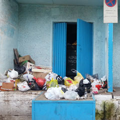 Седьмой подъезд дома № 11 в 8 микрорайоне Костаная в субботу и воскресенье превращается в мусорную свалку. Жители нашего подъезда обращались в ГКП «Тазалык-2000» с просьбой решить нашу проблему, но никакой реакции не дождались. Дело в том, что мусор вывозят по утрам с понедельника по субботу. А весь день в субботу и в воскресенье, кроме жителей нашего подъезда, мусор к контейнеру несут жители дома № 12. Им удобнее закинуть мусор по пути на остановку, причем они бросают его на территорию подъезда. В результате в мусоропроводе завелись крысы. Зловонный запах, неэстетичный вид и нежелание решать проблему приводят в отчаяние. Просили наш ПКСК «Сеним» перенести вход в подъезд на обратную сторону дома - там есть еще один выход, но он занят каким-то оборудованием этого ПКСК. Высылаю вам фотографии, сделанные в один из выходных дней.