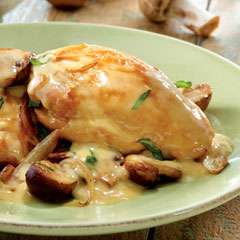 Великая египетская царица, говорят, для свежести и нежности кожи принимала ванны из парного молока, но для нашей курицы это постно. Нам подавай только сливки, которые в процессе готовки становятся вкусным и ароматным соусом. Насчет свежести куриной кожи - это вряд ли, но нежность птичьего мяса гарантирована.