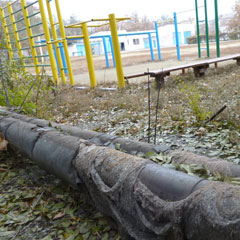- Трубы проходят через спортивный стадион и открыты в нескольких местах, - сообщила Мальцева. - Сначала были прорехи в изоляции в одном месте, потом - в другом, а постепенно изоляция обветшала до такой степени, что стала свешиваться с труб.