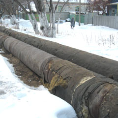 На месте корреспонденты «НГ» увидели, что магистральные трубы открыты на нескольких участках. Самые большие прорехи видны напротив домов № 158 и № 160 по ул. Летунова. В целом без изоляции здесь около 2 м магистральных теплосетей.