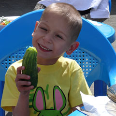 Пока малыши обсуждали этот важный вопрос, дети постарше из театральной студии поставили для них инсценировку по рассказу Николая Носова «Огурцы». А самым главным мероприятием дня стал конкурс «Очумелые ручки». Ребята трудились, не покладая рук: резали, терли, смешивали и добавляли специи в различные кулинарные шедевры. Естественно, во всех блюдах присутствовал король праздника - огурец. Руководили конкурсом сразу четыре необычных повара: повар-философ помогал ребятам солить, скупой повар заправлял блюда уксусом, масло добавлял повар-мот, а повар-художник смешивал ингредиенты. Параллельно проводились конкурсы «Каждому молодцу по огурцу», «Пальчики оближешь» и «Хваленый огурец». Победителям вручались огуречные призы.