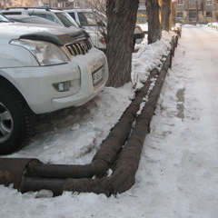 Вдоль дома по ул. Чехова, 102 корреспонденты «НГ» обнаружили теплотрассу среднего диаметра. В том месте, где вплотную к трубам ставят машины, есть несколько прорех в изоляции.