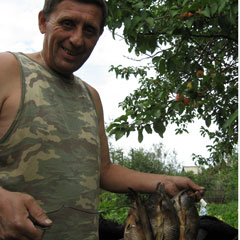 Федора Николаевича Юхалко любят всяческие механизмы, а еще карпы и караси. Человек с умными руками, он заставит и телегу без лошади двигаться. А свои рыбацкие уловы никогда не считает поштучно. Его единица отсчета - мешок. Причем ловит на удочку: сети Федор Юхалко не слишком жалует. Сначала рыбный избыток Федор Николаевич превращал в домашние консервы, а потом появилась на его даче коптильня.